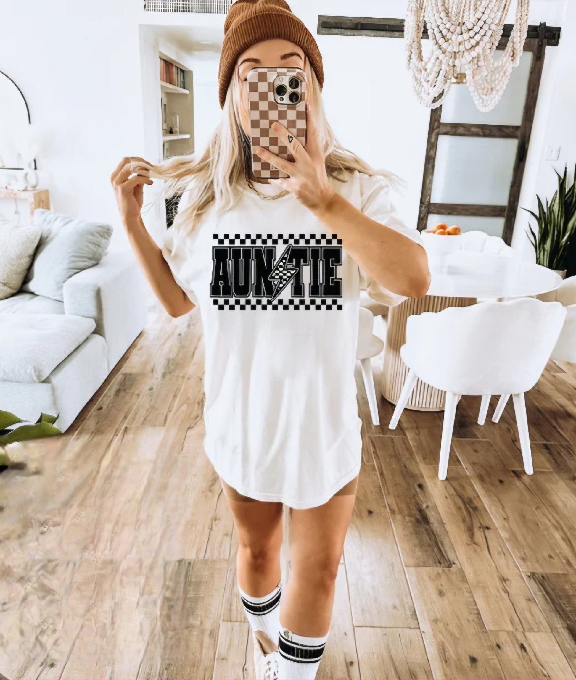 Spark some fun with this playful AUNTIE tee featuring a bold lightning bolt—perfect for the aunt who lights up every room!